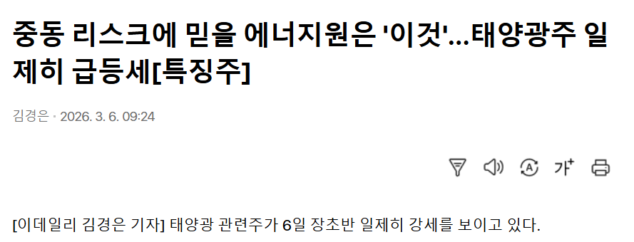 • 중동 에너지 공급 차질 → 대체 에너지 수요 증가