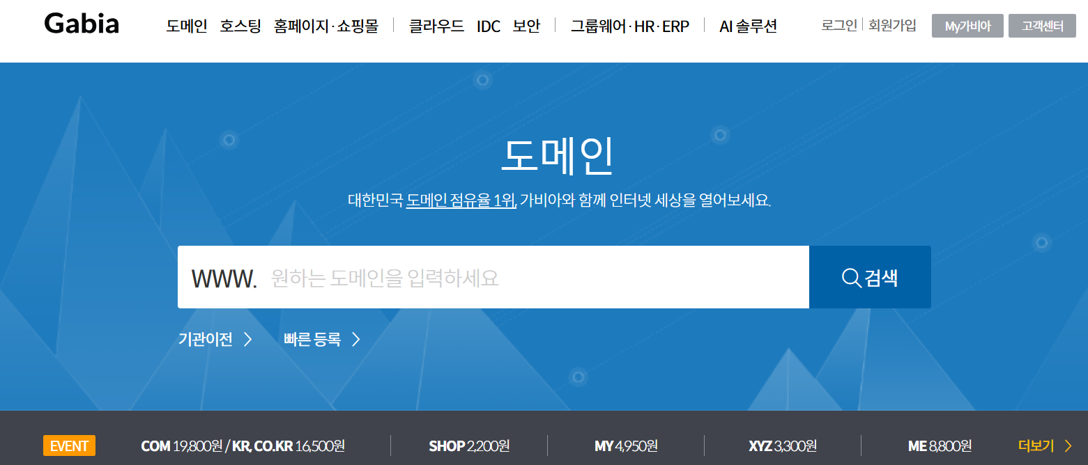가비아는 국내에서 오래된 도메인 등록 업체라 안정성이 높다고 판단했습니다. 또한 한글 지원이 잘 되어 있고, 결제 과정이 직관적이어서 초보자도 어렵지 않게 도메인을 구매할 수 있었습니다.