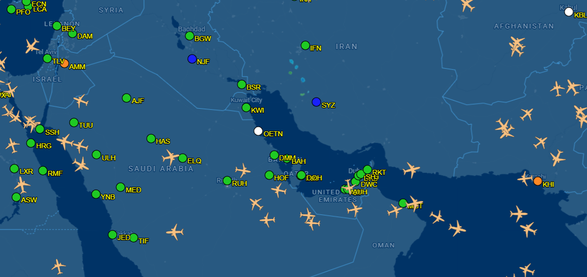 중동 여러 국가(이란, 이스라엘, 쿠웨이트, 카타르, 바레인, UAE 등)는 항공기 안전 위험을 우려해 항공편을 중단하거나 대체 경로를 모색하고 있습니다.