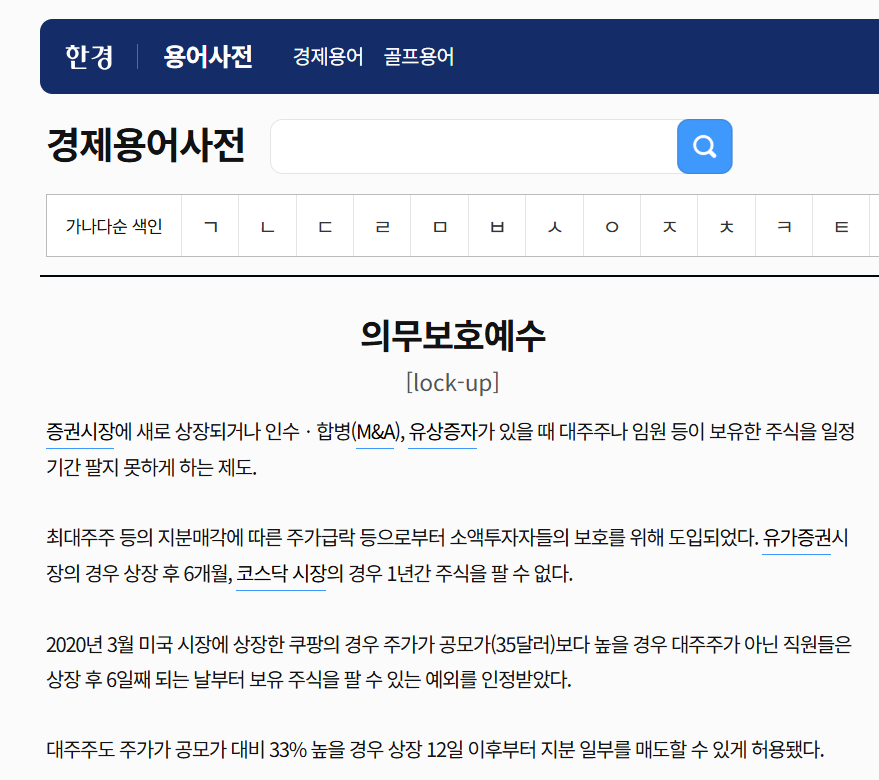 영어로는 락업(Lock-up)이라고 하며, 상장 직후 대량 매도로 인해 주가가 급락하는 상황을 방지하고 개인 투자자를 보호하기 위해 도입된 제도입니다.