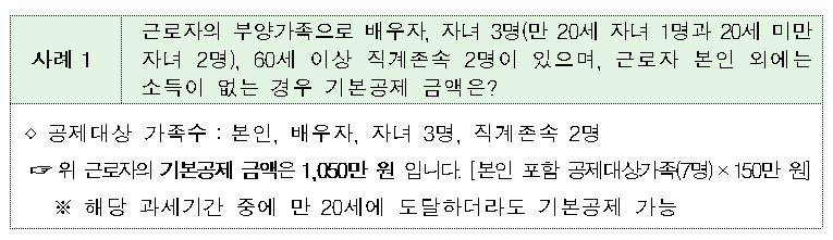 → 기본공제 금액: 7명 × 150만 원 = 1,050만 원