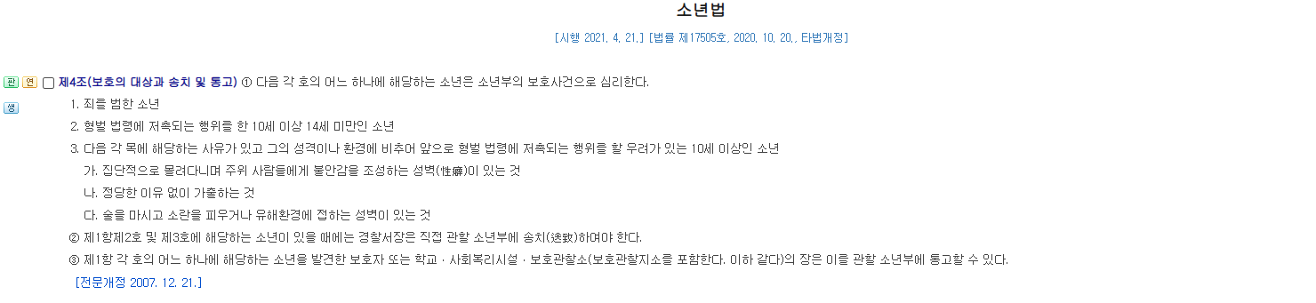 - 형법 제9조: 만 14세 미만은 형사미성년자
