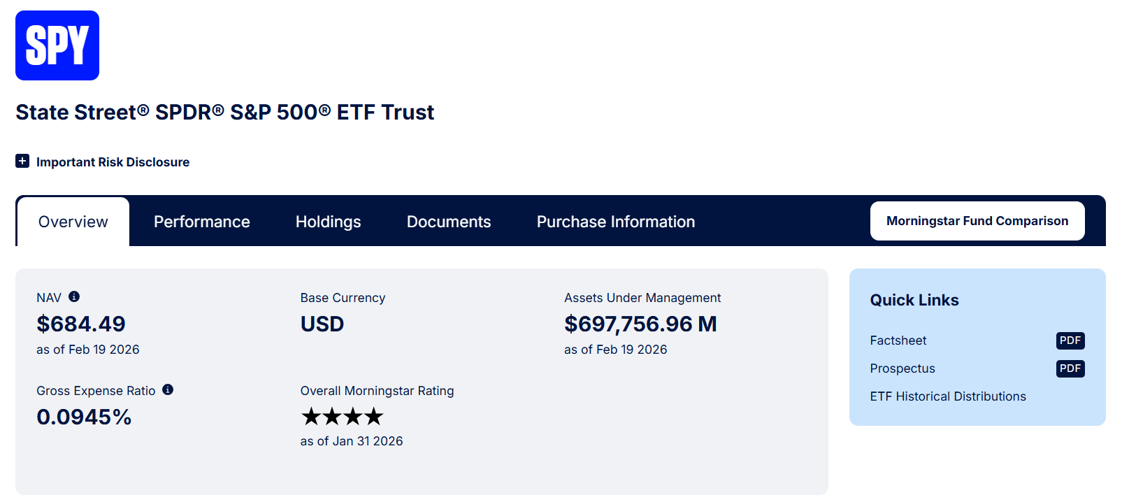 1993년 상장 이후 약 30년 이상 운용되며 글로벌 자금이 가장 많이 몰린 ETF 중 하나로 자리 잡았습니다. 2026년 기준 운용 규모(AUM)는 약 7,000억 달러 수준으로, 세계 최대 ETF 중 하나입니다.